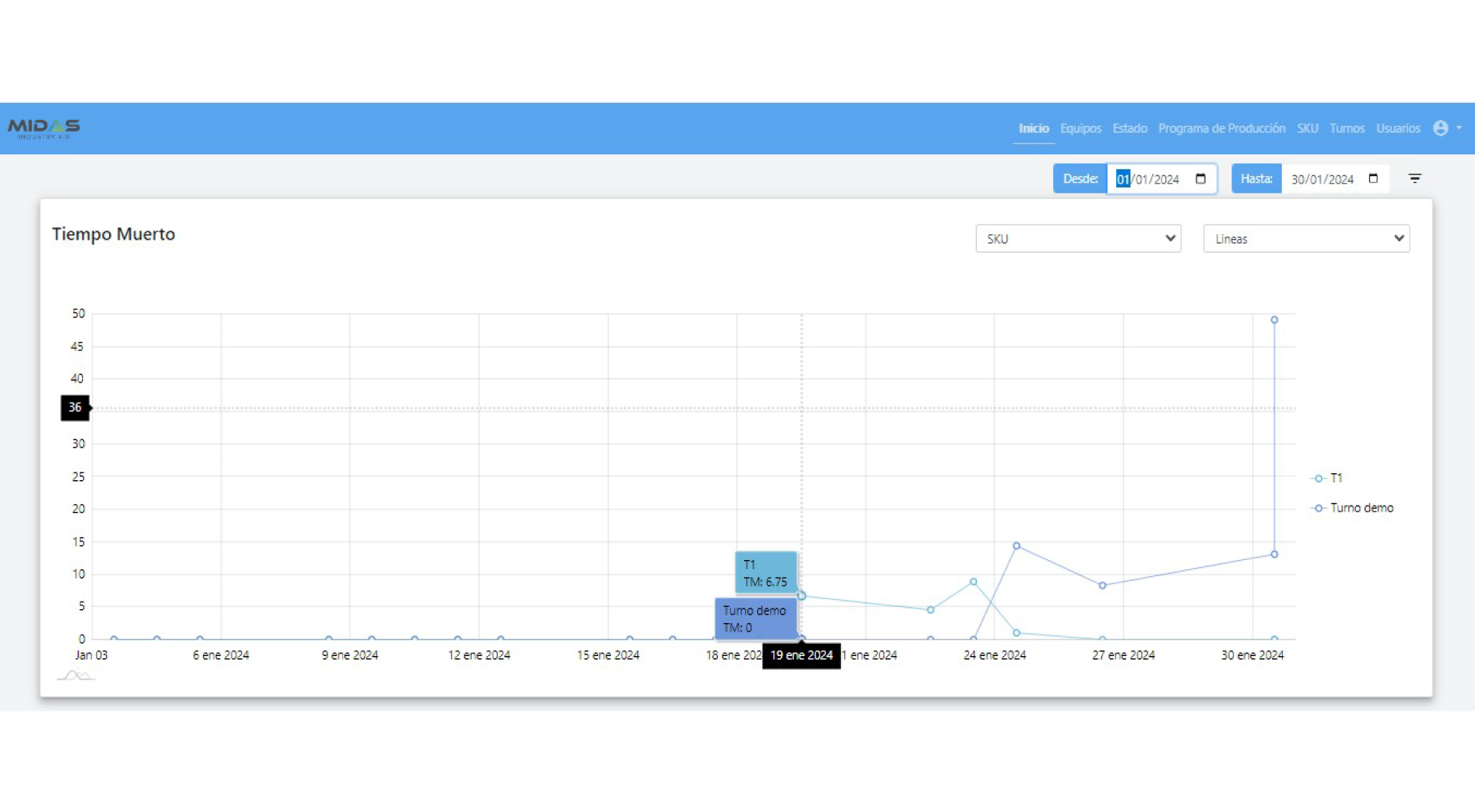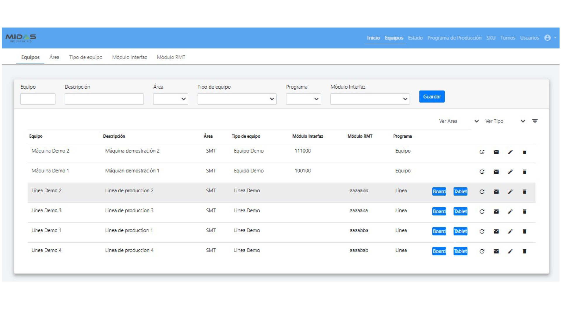 Todas las líneas de producción o máquinas se pueden agregar al sistema para medir, monitorear y mejorar el rendimiento en tiempo real.