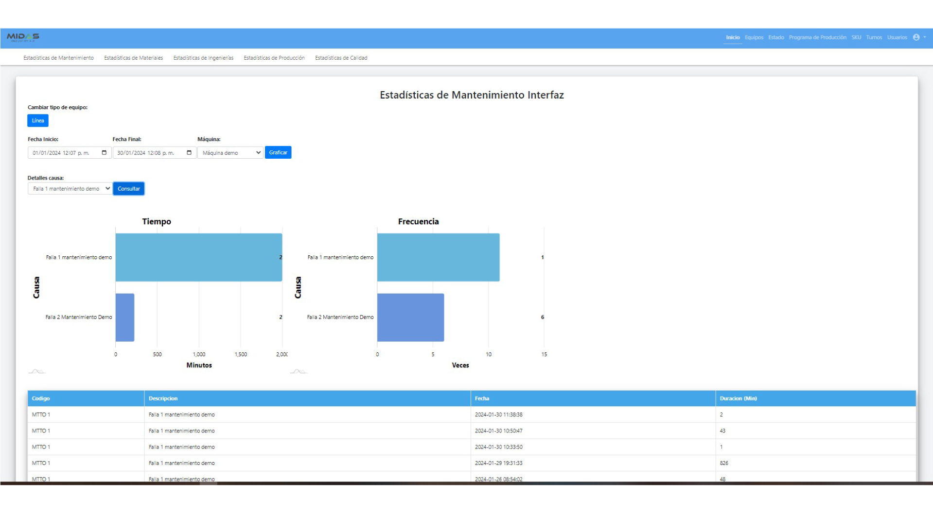• En caso de problemas con el proveedor de internet, MIDAS puede almacenar entre 2 días y un mes de datos, según el tiempo de takt.